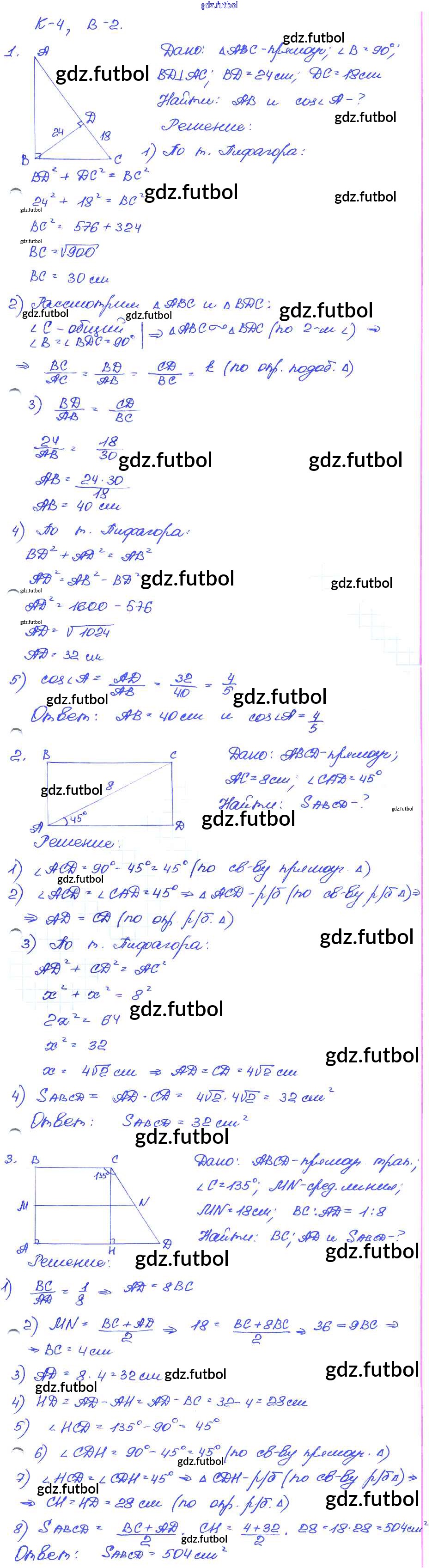 Готовые домашние задания по Геометрии за 9 класс Иченская Самостоятельные и контрольные работы 2017 ФГОС - КР-4. Варианты 2