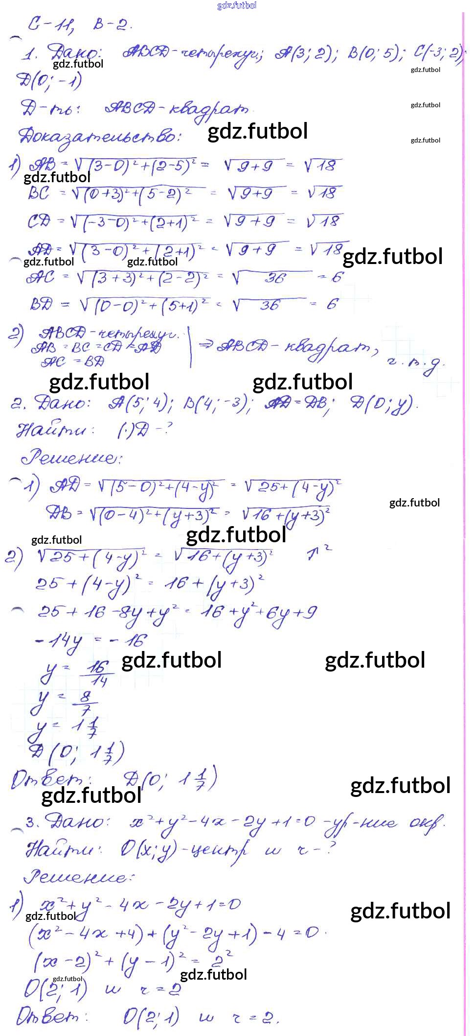 Готовые домашние задания по Геометрии за 9 класс Иченская Самостоятельные и контрольные работы   2017 ФГОС - СР-11. Варианты 2