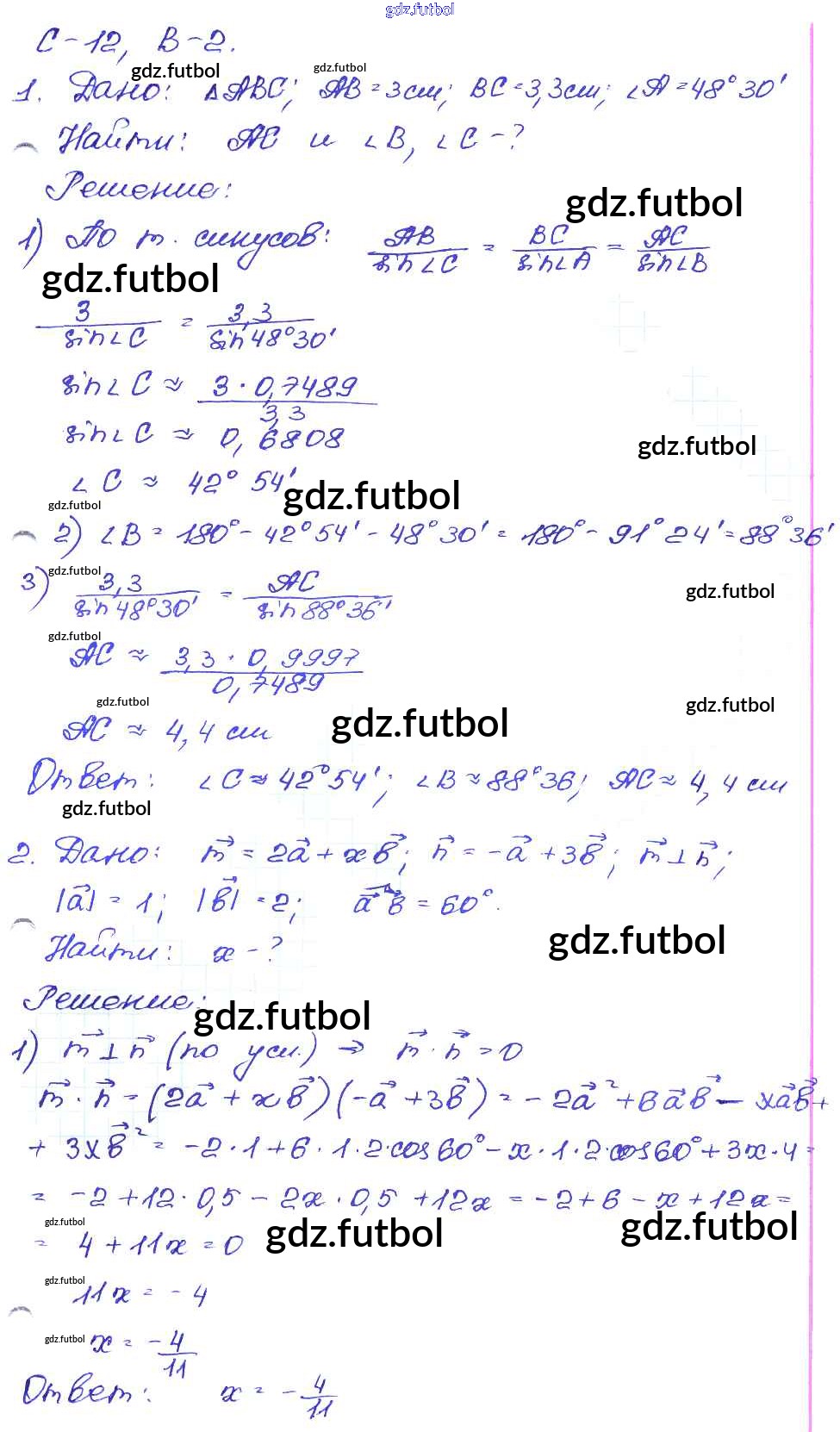 Готовые домашние задания по Геометрии за 9 класс Иченская Самостоятельные и контрольные работы 2017 ФГОС - СР-12. Варианты 2