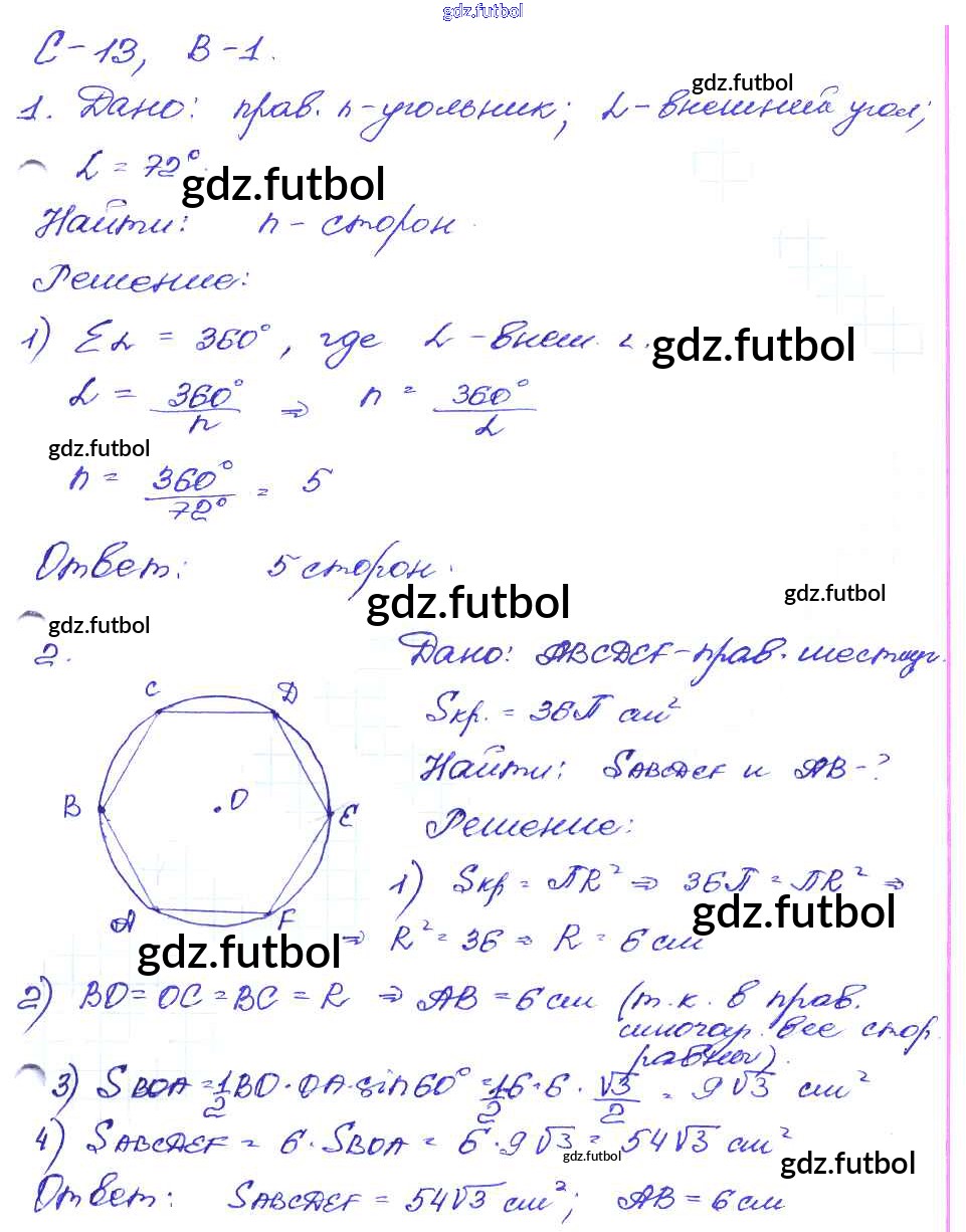 Готовые домашние задания по Геометрии за 9 класс Иченская Самостоятельные и контрольные работы   2017 ФГОС - СР-13. Варианты 1