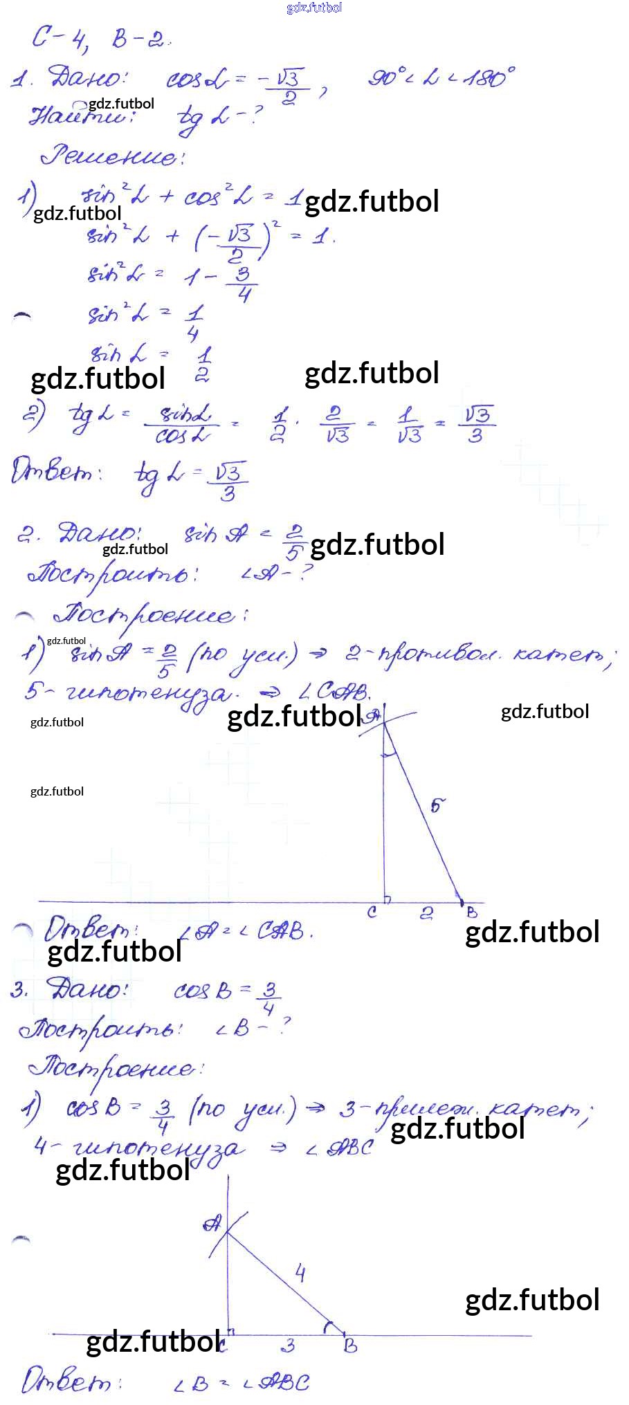 Готовые домашние задания по Геометрии за 9 класс Иченская Самостоятельные и контрольные работы 2017 ФГОС - СР-4. Варианты 2