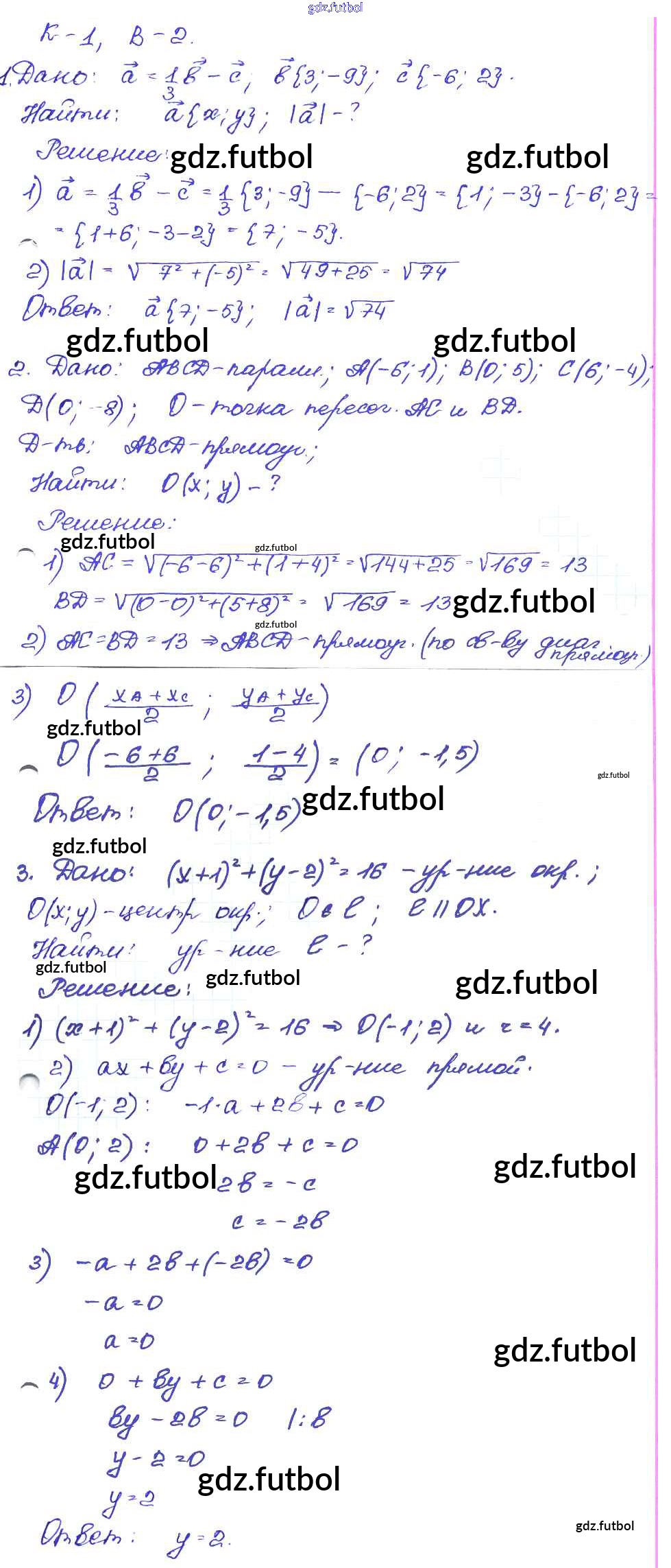 Готовые домашние задания по Геометрии за 9 класс Иченская Самостоятельные и контрольные работы 2017 ФГОС - КР-1. Варианты 2