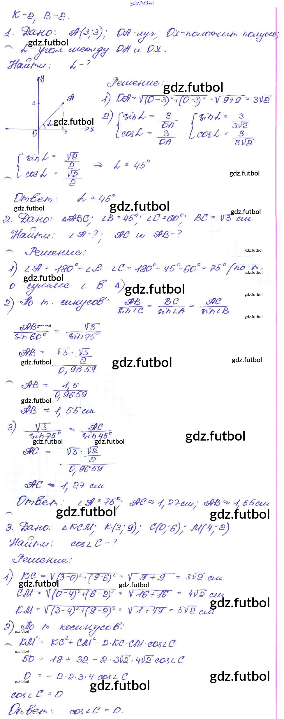 Готовые домашние задания по Геометрии за 9 класс Иченская Самостоятельные и контрольные работы 2017 ФГОС - КР-2. Варианты 2