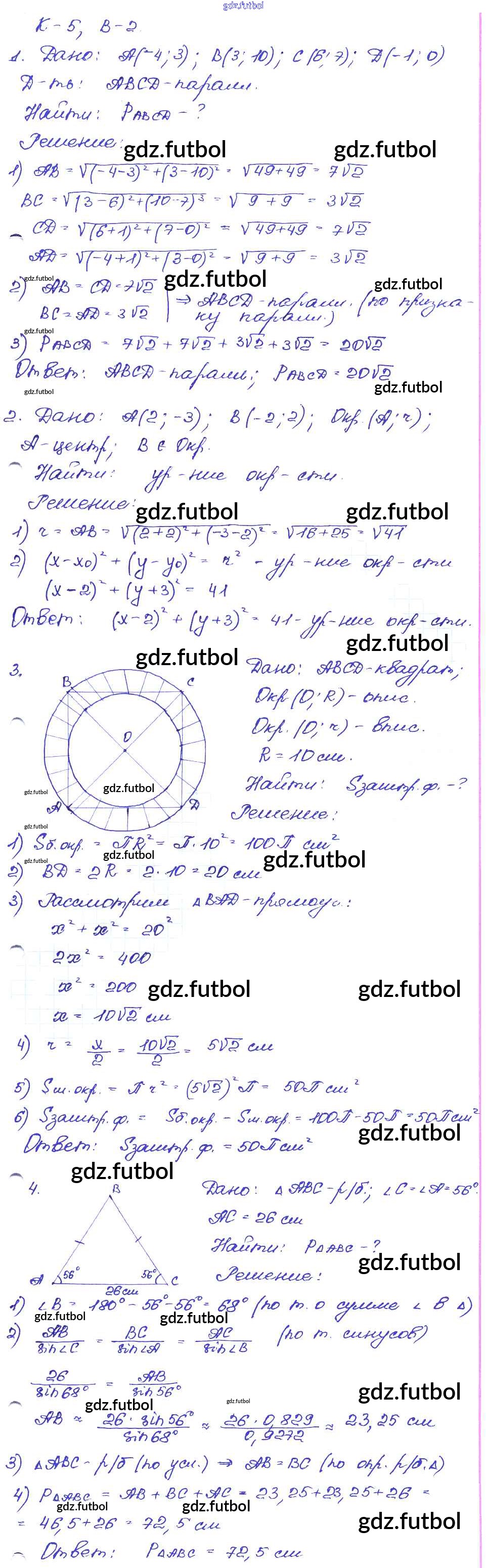 Готовые домашние задания по Геометрии за 9 класс Иченская Самостоятельные и контрольные работы 2017 ФГОС - КР-5. Варианты 2