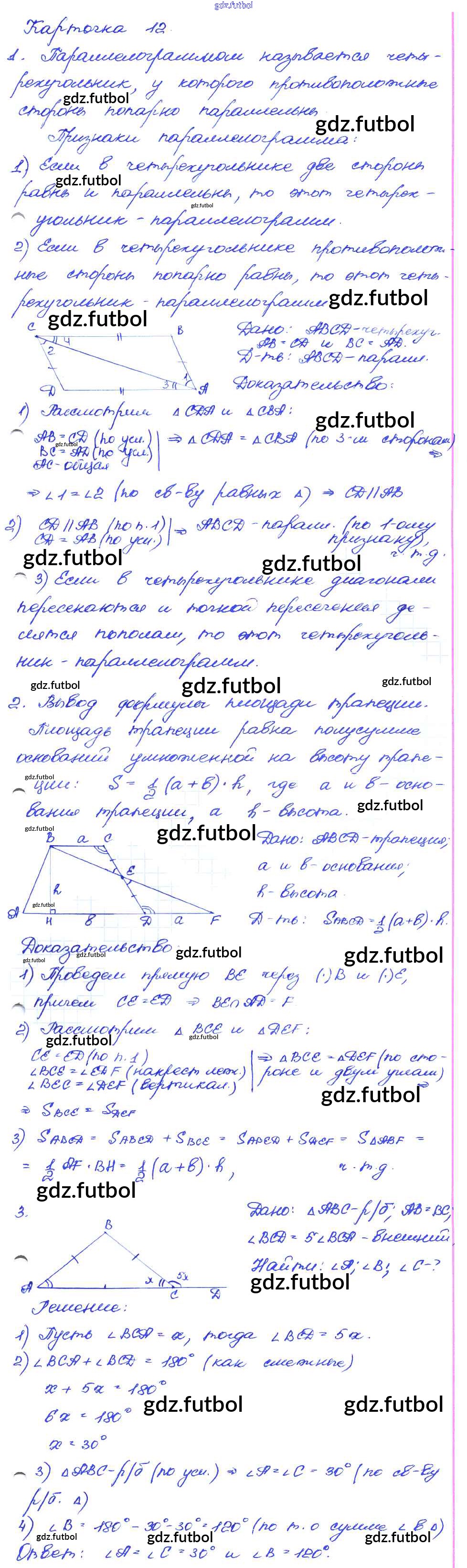 Готовые домашние задания по Геометрии за 9 класс Иченская Самостоятельные и контрольные работы 2017 ФГОС - Итоговый зачёт 12