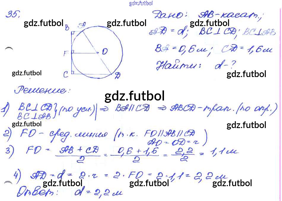 Готовые домашние задания по Геометрии за 9 класс Иченская Самостоятельные и контрольные работы 2017 ФГОС - Дополнительные задачи 35