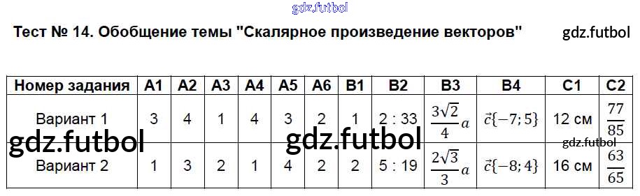 Готовые домашние задания по Геометрии за 9 класс Рурукин Контрольно-измерительные материалы (КИМ) 2016 ФГОС - Тесты 14