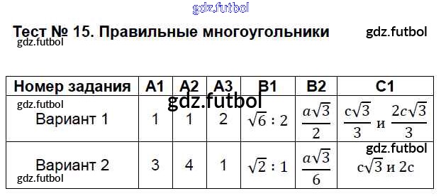Готовые домашние задания по Геометрии за 9 класс Рурукин Контрольно-измерительные материалы (КИМ) 2016 ФГОС - Тесты 15