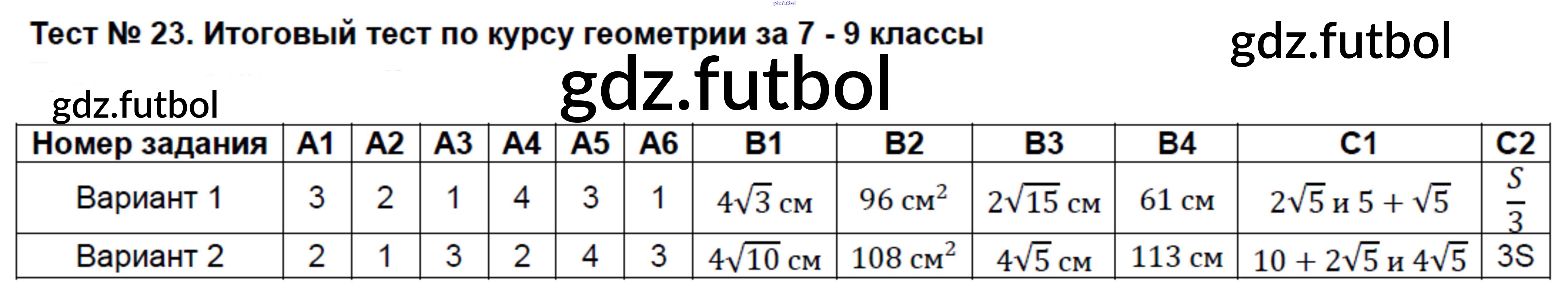 Готовые домашние задания по Геометрии за 9 класс Рурукин Контрольно-измерительные материалы (КИМ) 2016 ФГОС - Тесты 23