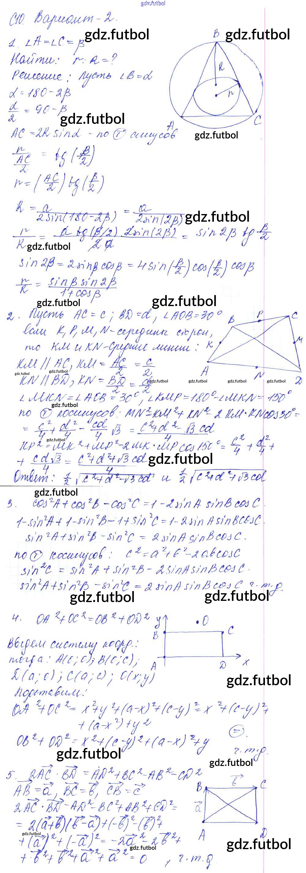 Готовые домашние задания по Геометрии за 9 класс Журавлев Контрольные и самостоятельные работы УМК 2016 ФГОС - СР-10. Варианты 2