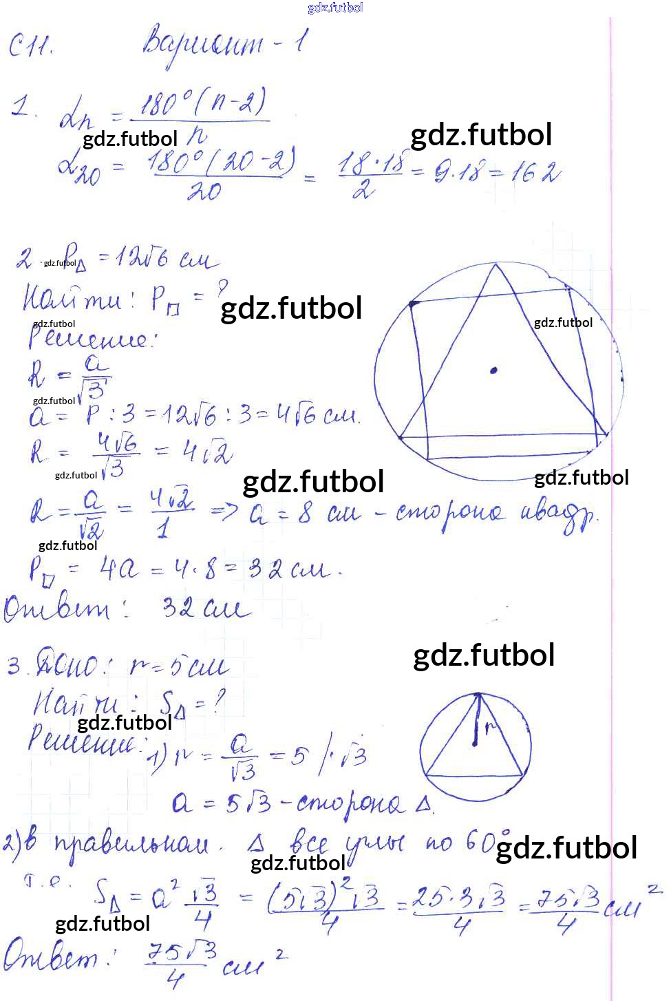 Готовые домашние задания по Геометрии за 9 класс Журавлев Контрольные и самостоятельные работы УМК 2016 ФГОС - СР-11. Варианты 1