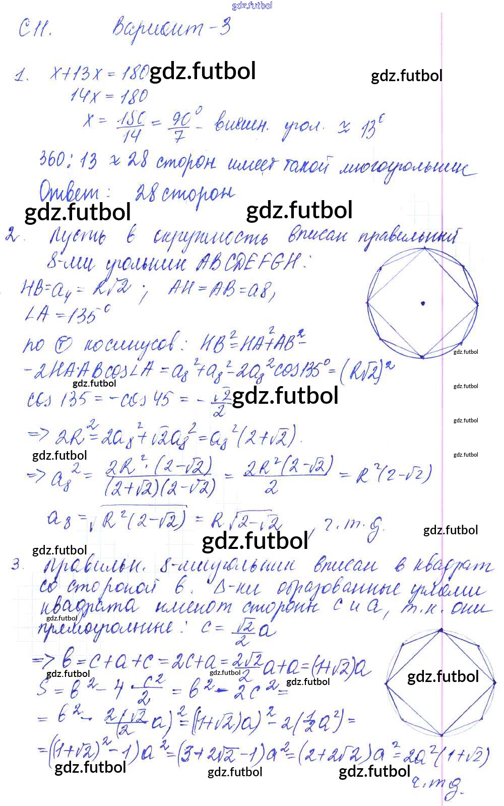 Готовые домашние задания по Геометрии за 9 класс Журавлев Контрольные и самостоятельные работы УМК 2016 ФГОС - СР-11. Варианты 3