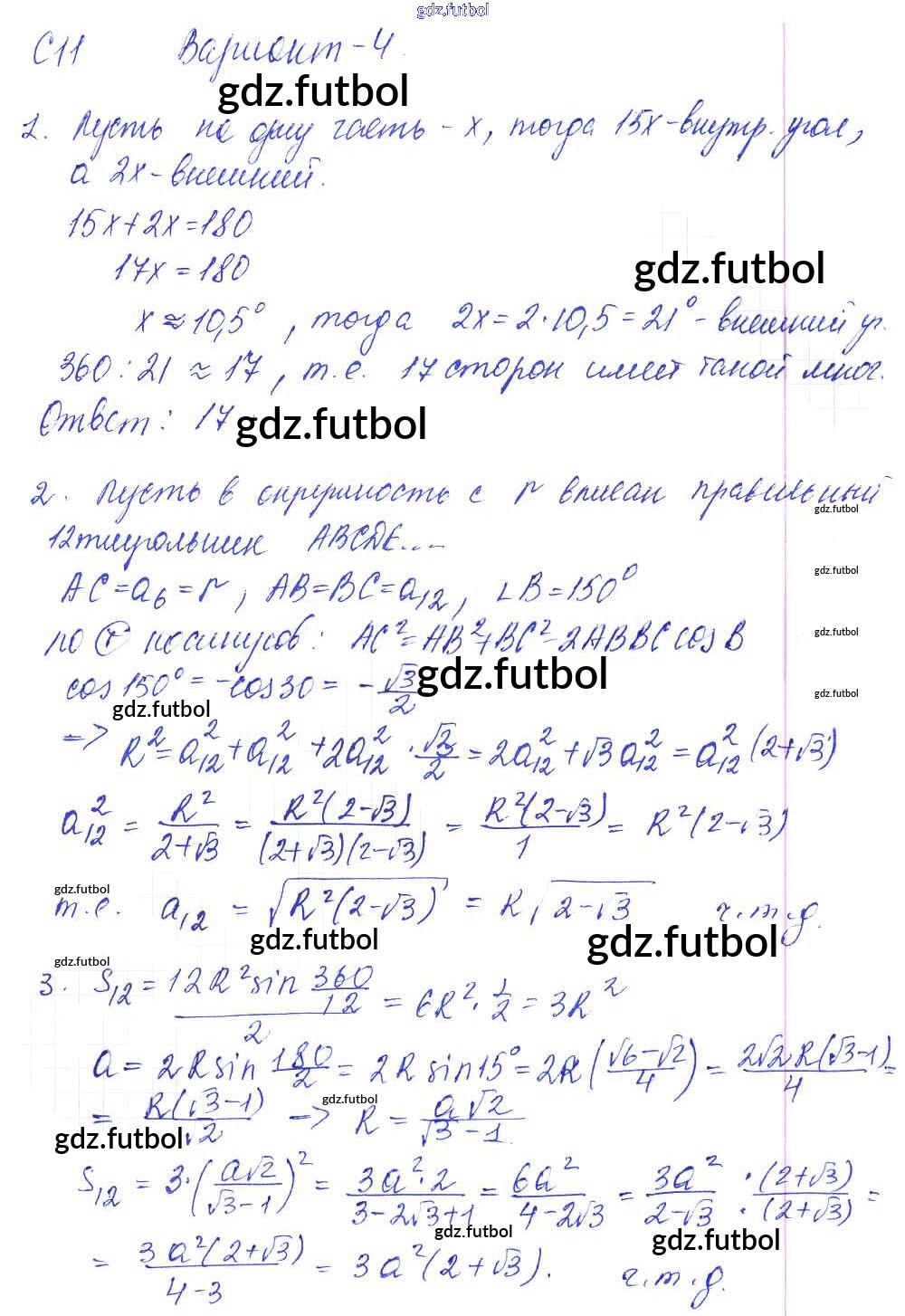 Готовые домашние задания по Геометрии за 9 класс Журавлев Контрольные и самостоятельные работы УМК 2016 ФГОС - СР-11. Варианты 4