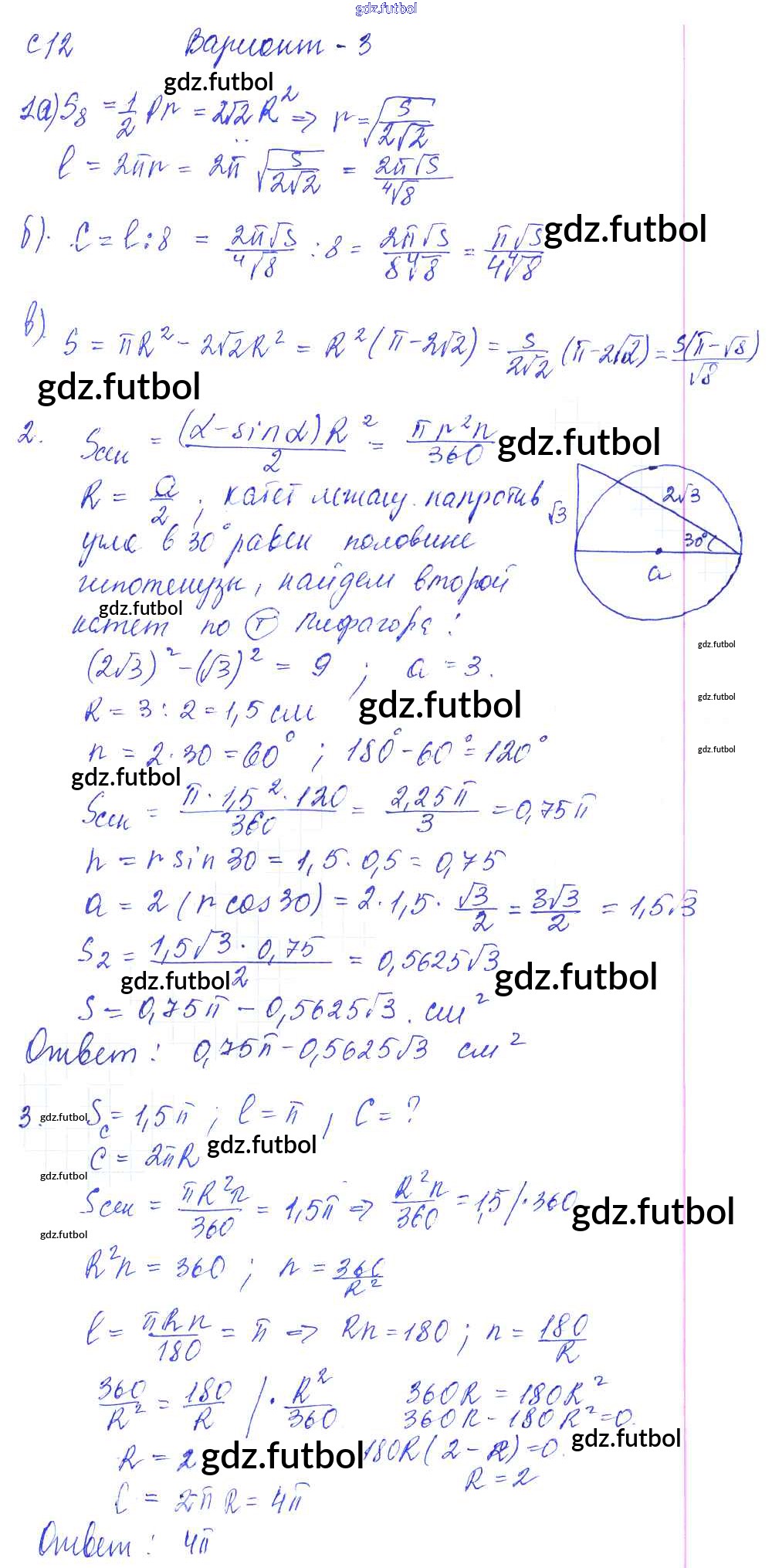 Готовые домашние задания по Геометрии за 9 класс Журавлев Контрольные и самостоятельные работы УМК 2016 ФГОС - СР-12. Варианты 3