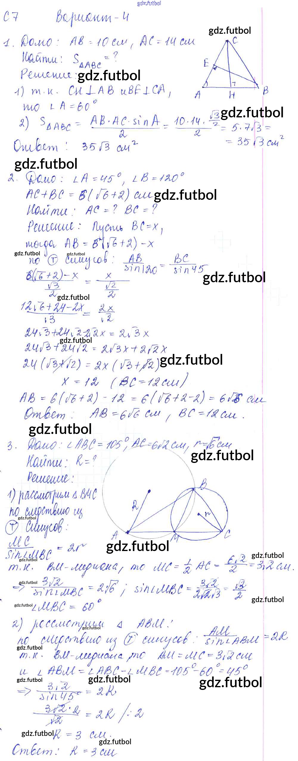 Готовые домашние задания по Геометрии за 9 класс Журавлев Контрольные и самостоятельные работы УМК 2016 ФГОС - СР-7. Варианты 4