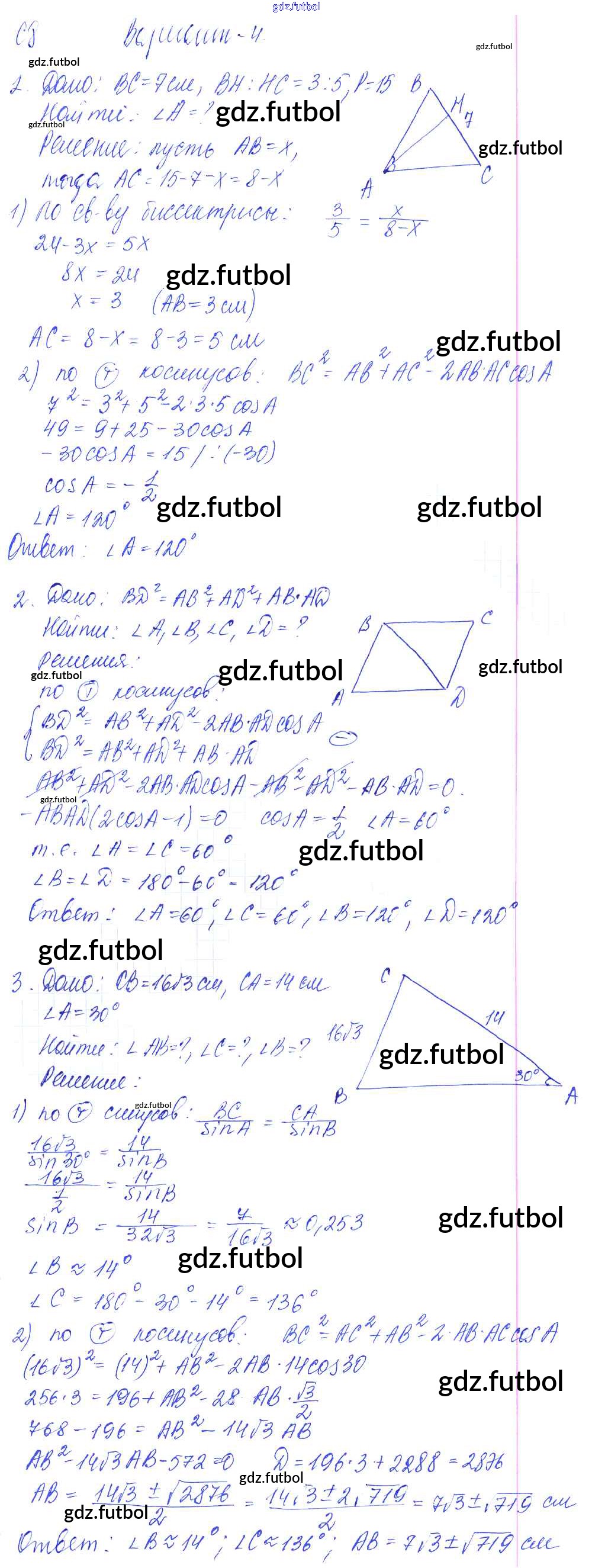 Готовые домашние задания по Геометрии за 9 класс Журавлев Контрольные и самостоятельные работы УМК 2016 ФГОС - СР-8. Варианты 4