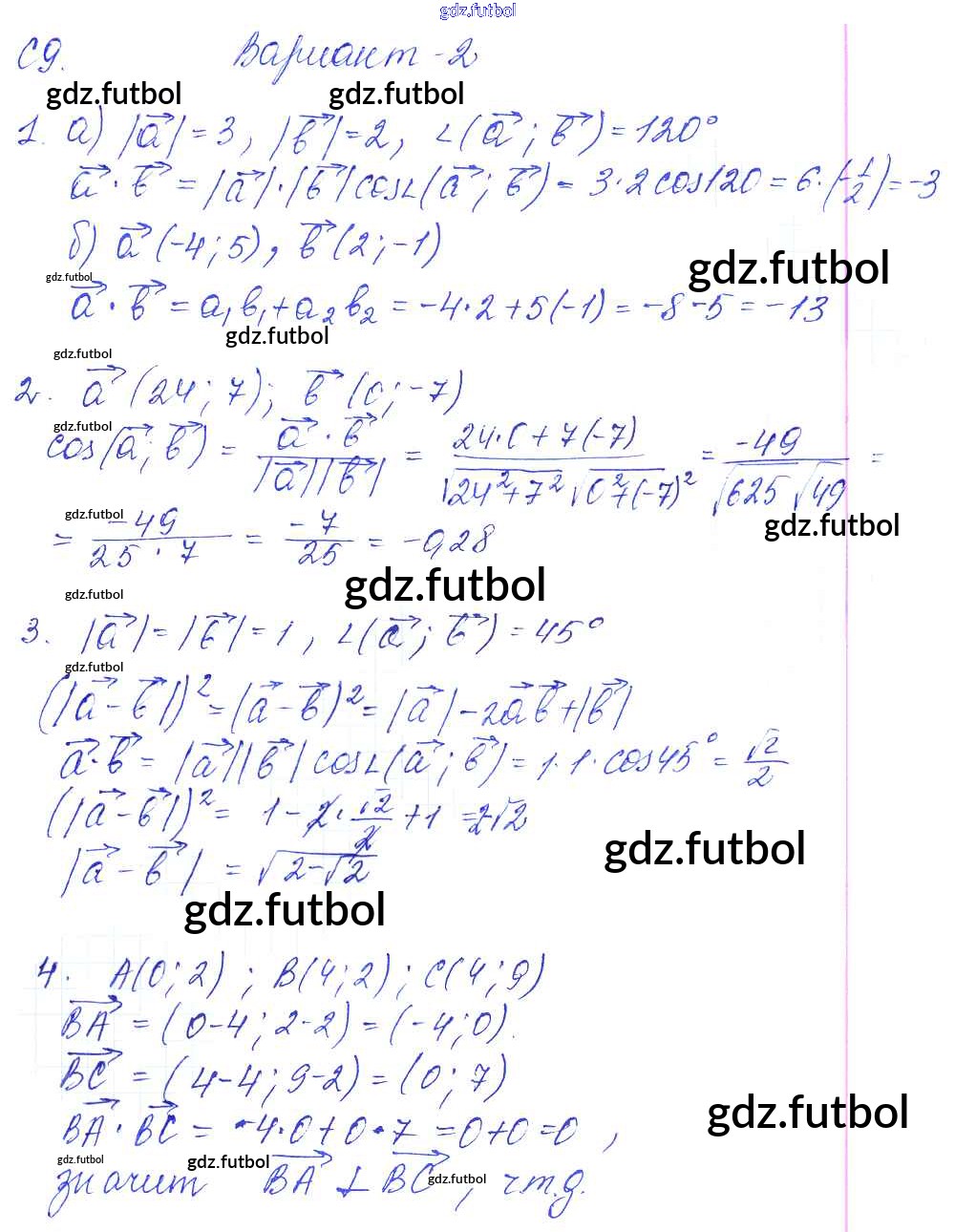 Готовые домашние задания по Геометрии за 9 класс Журавлев Контрольные и самостоятельные работы УМК 2016 ФГОС - СР-9. Варианты 2