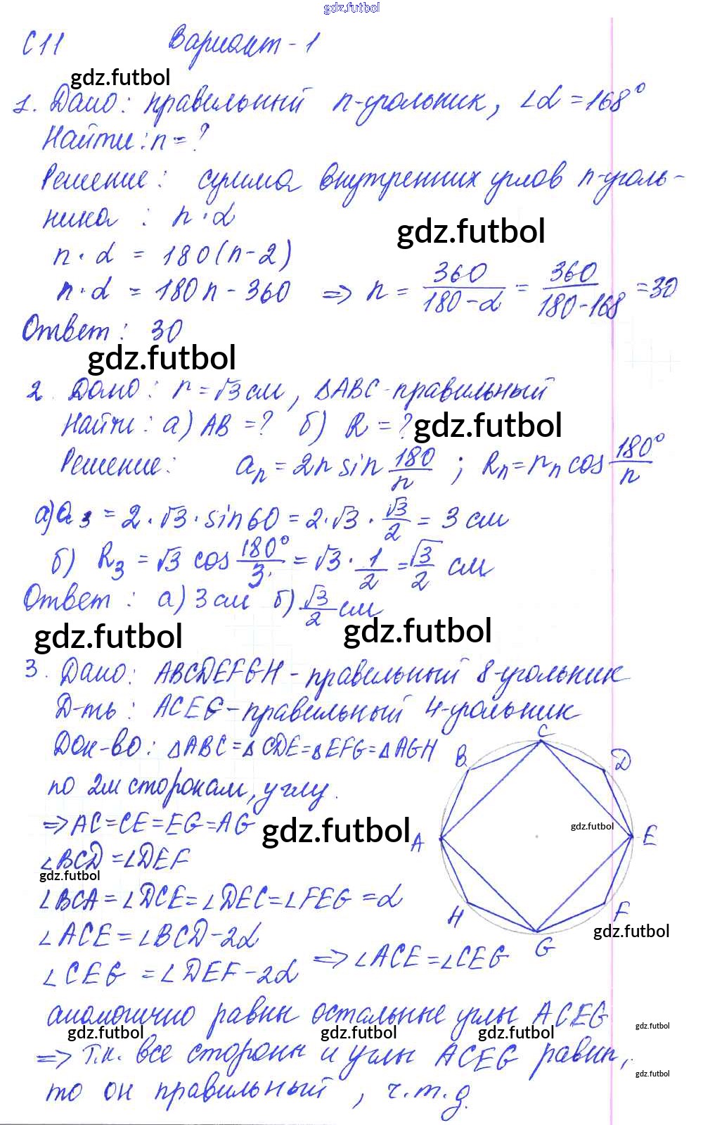 Готовые домашние задания по Геометрии за 9 класс Журавлев Контрольные и самостоятельные работы УМК 2016 ФГОС - СР-11. Варианты 1