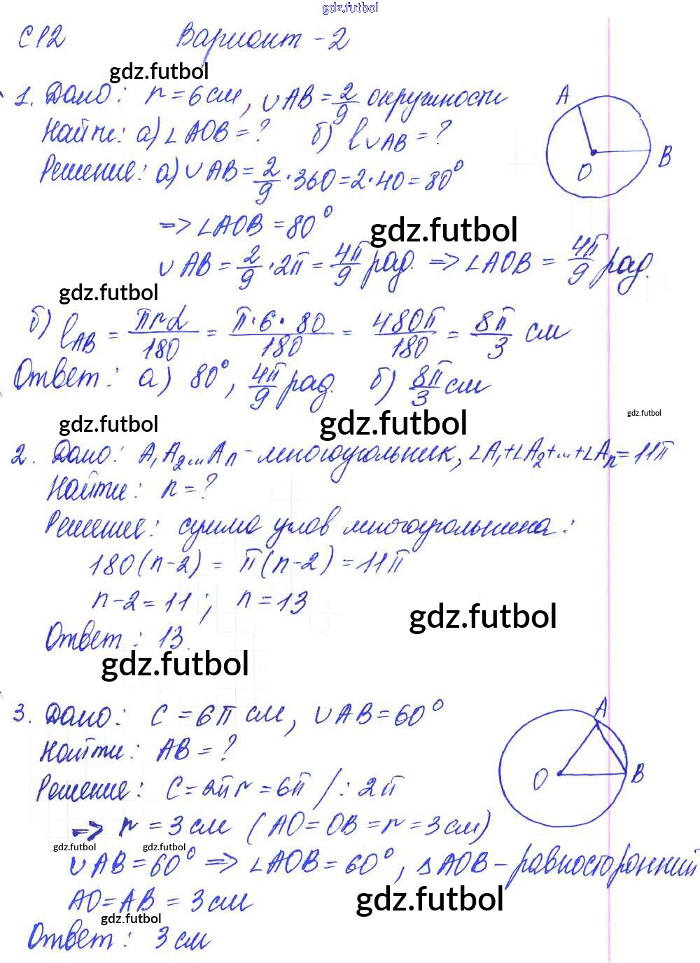 Готовые домашние задания по Геометрии за 9 класс Журавлев Контрольные и самостоятельные работы УМК  2016 ФГОС - СР-12. Варианты 2
