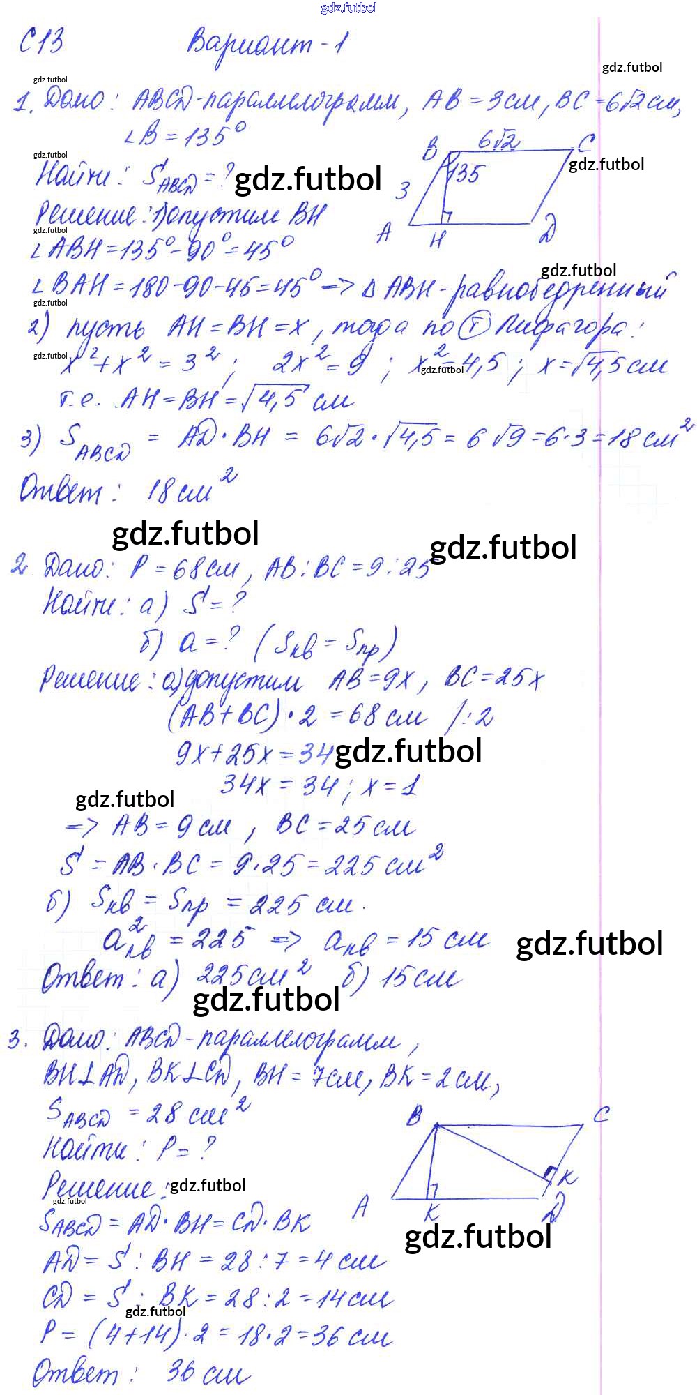 Готовые домашние задания по Геометрии за 9 класс Журавлев Контрольные и самостоятельные работы УМК 2016 ФГОС - СР-13. Варианты 1