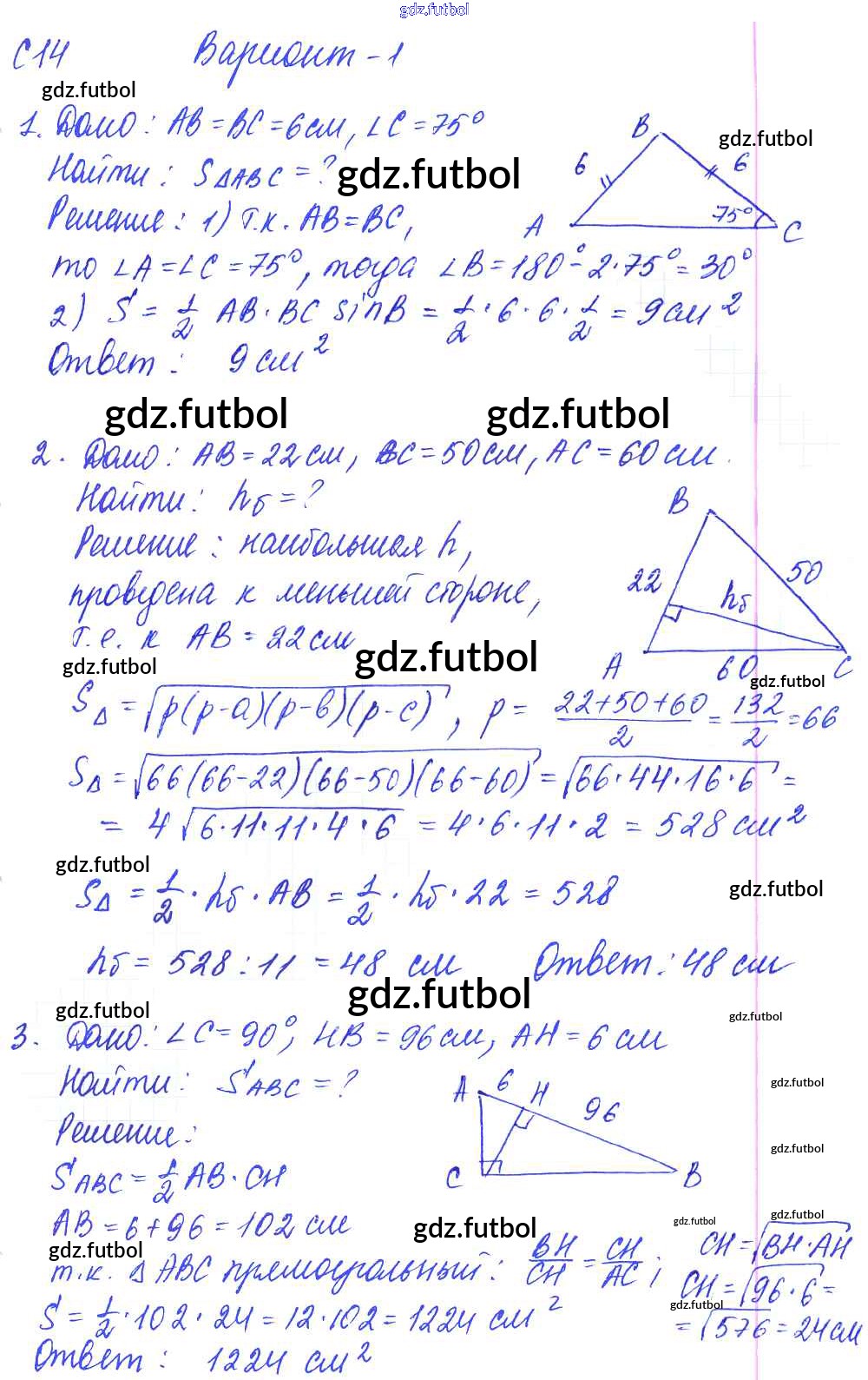 Готовые домашние задания по Геометрии за 9 класс Журавлев Контрольные и самостоятельные работы УМК 2016 ФГОС - СР-14. Варианты 1