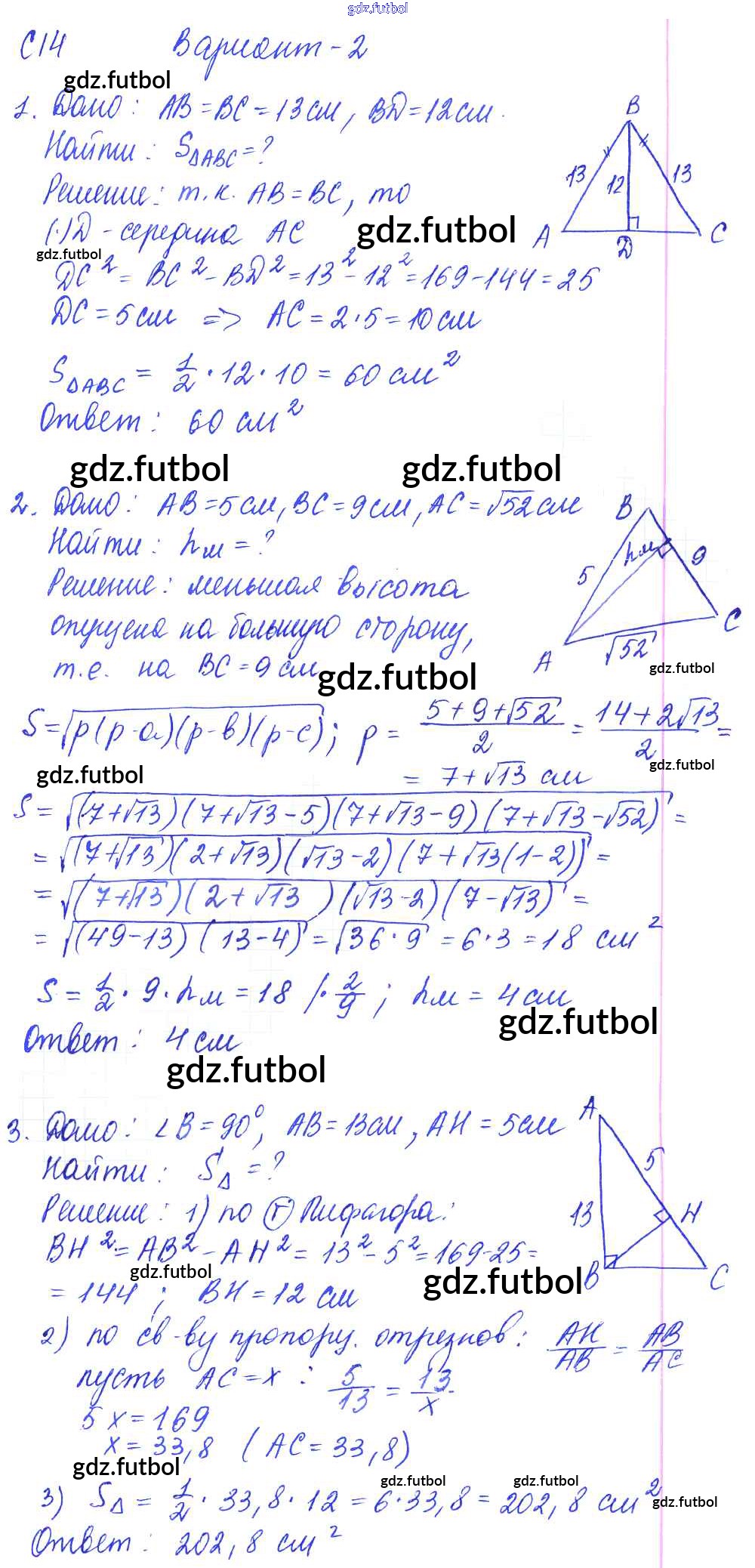 Готовые домашние задания по Геометрии за 9 класс Журавлев Контрольные и самостоятельные работы УМК 2016 ФГОС - СР-14. Варианты 2