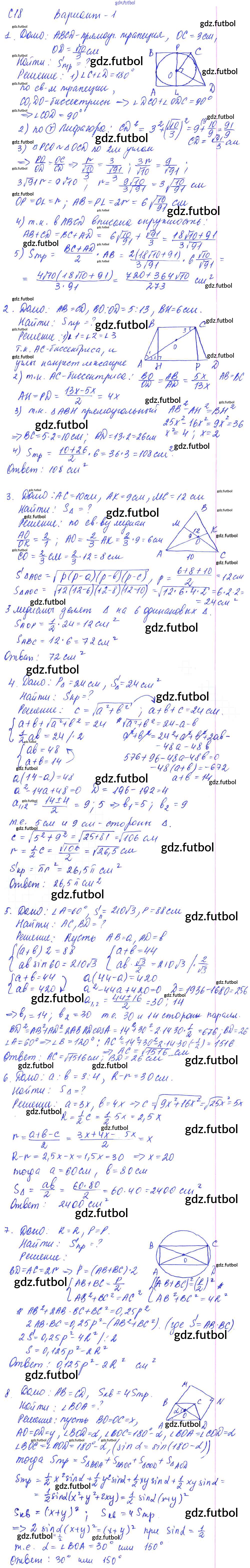 Готовые домашние задания по Геометрии за 9 класс Журавлев Контрольные и самостоятельные работы УМК 2016 ФГОС - СР-18. Варианты 1