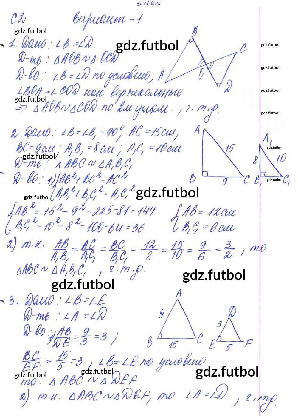 Готовые домашние задания по Геометрии за 9 класс Журавлев Контрольные и самостоятельные работы УМК  2016 ФГОС - СР-2. Варианты 1
