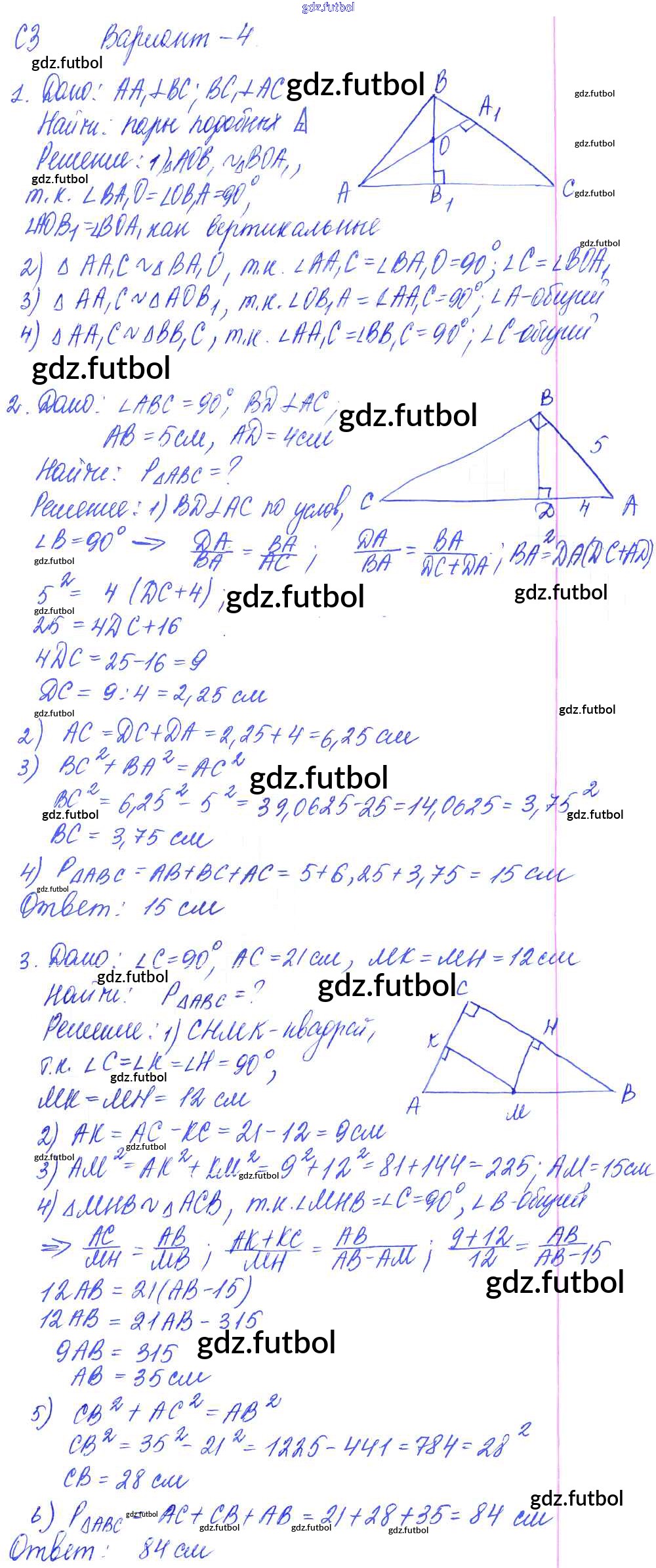 Готовые домашние задания по Геометрии за 9 класс Журавлев Контрольные и самостоятельные работы УМК 2016 ФГОС - СР-3. Варианты 4