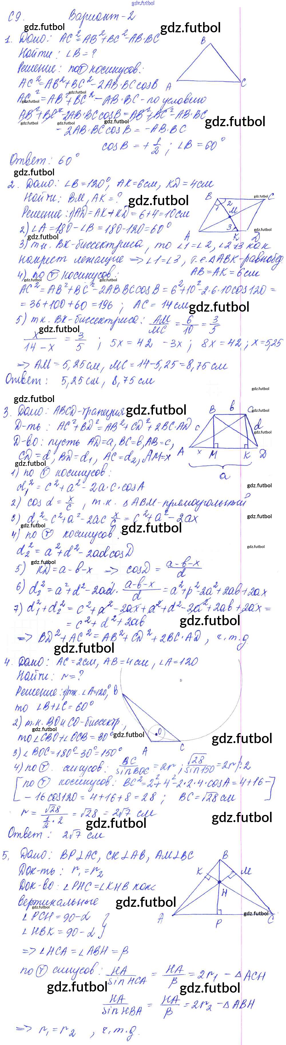 Готовые домашние задания по Геометрии за 9 класс Журавлев Контрольные и самостоятельные работы УМК 2016 ФГОС - СР-9. Варианты 2