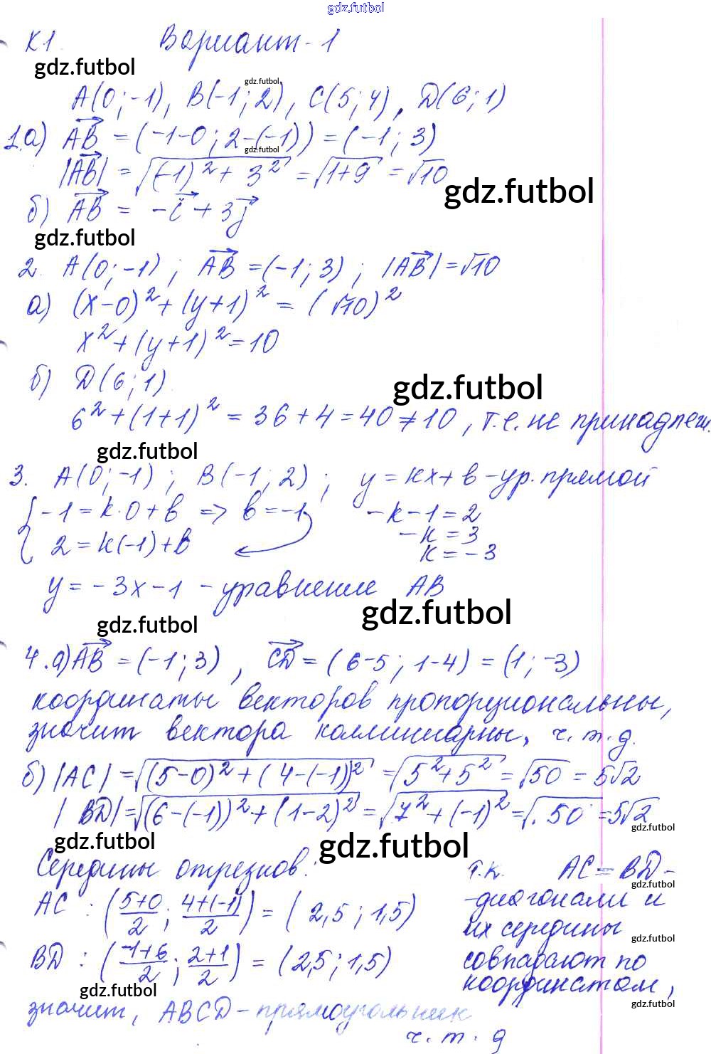 Готовые домашние задания по Геометрии за 9 класс Журавлев Контрольные и самостоятельные работы УМК 2016 ФГОС - КР-1. Варианты 1