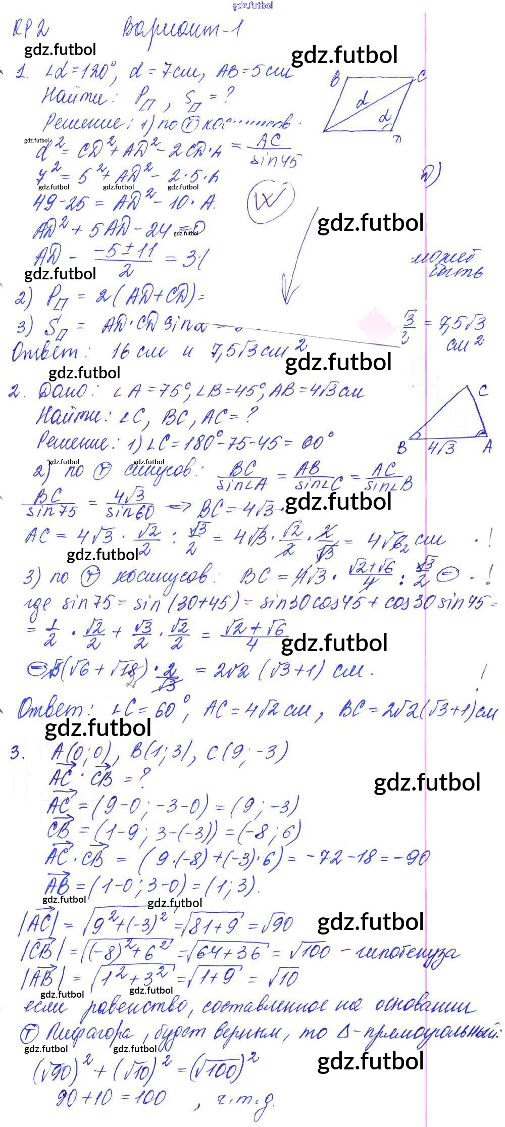 Готовые домашние задания по Геометрии за 9 класс Журавлев Контрольные и самостоятельные работы УМК 2016 ФГОС - КР-2. Варианты 1