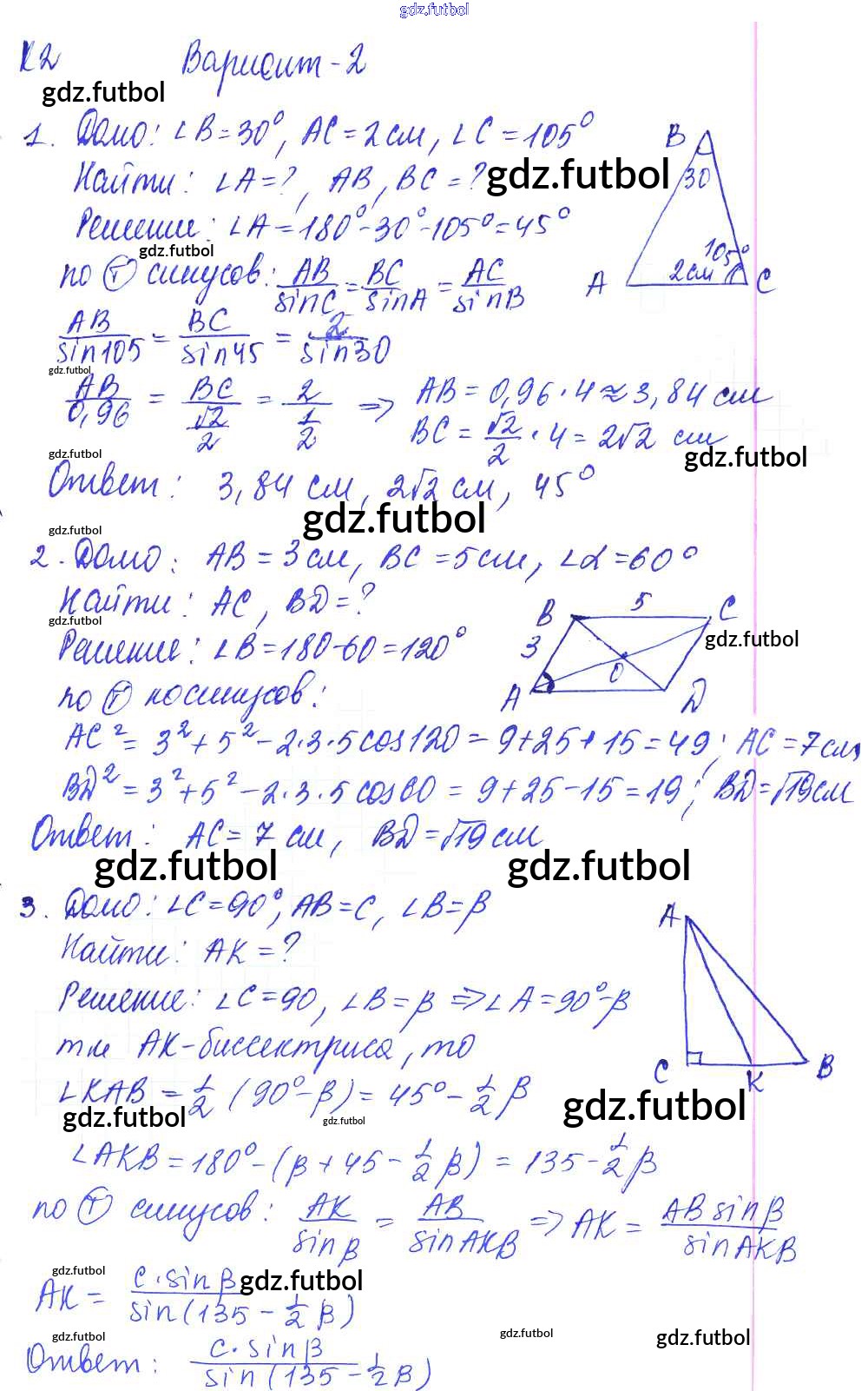 Готовые домашние задания по Геометрии за 9 класс Журавлев Контрольные и самостоятельные работы УМК 2016 ФГОС - КР-2. Варианты 2