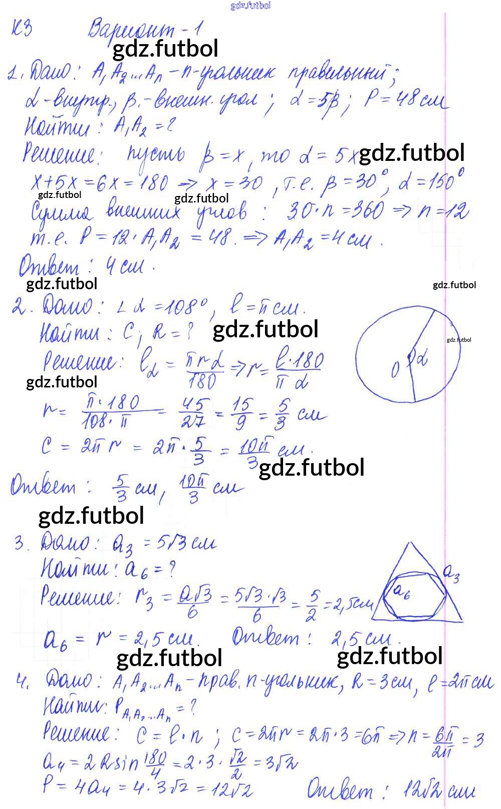 Готовые домашние задания по Геометрии за 9 класс Журавлев Контрольные и самостоятельные работы УМК  2016 ФГОС - КР-3. Варианты 1
