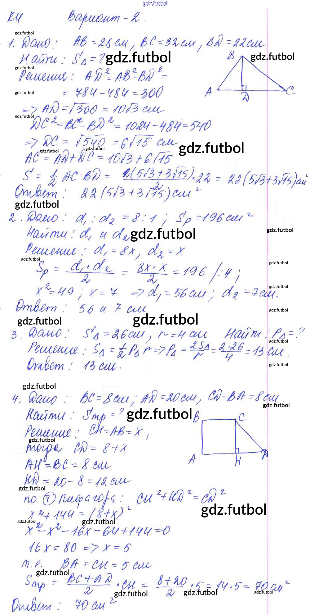 Готовые домашние задания по Геометрии за 9 класс Журавлев Контрольные и самостоятельные работы УМК  2016 ФГОС - КР-4. Варианты 2