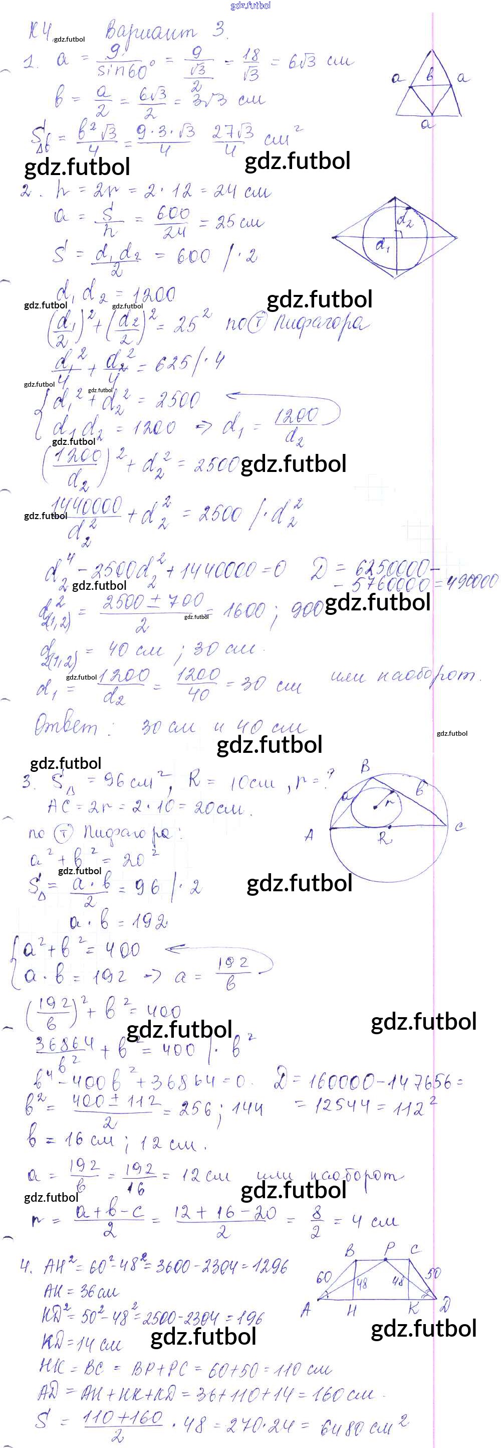 Готовые домашние задания по Геометрии за 9 класс Журавлев Контрольные и самостоятельные работы УМК  2016 ФГОС - КР-4. Варианты 3