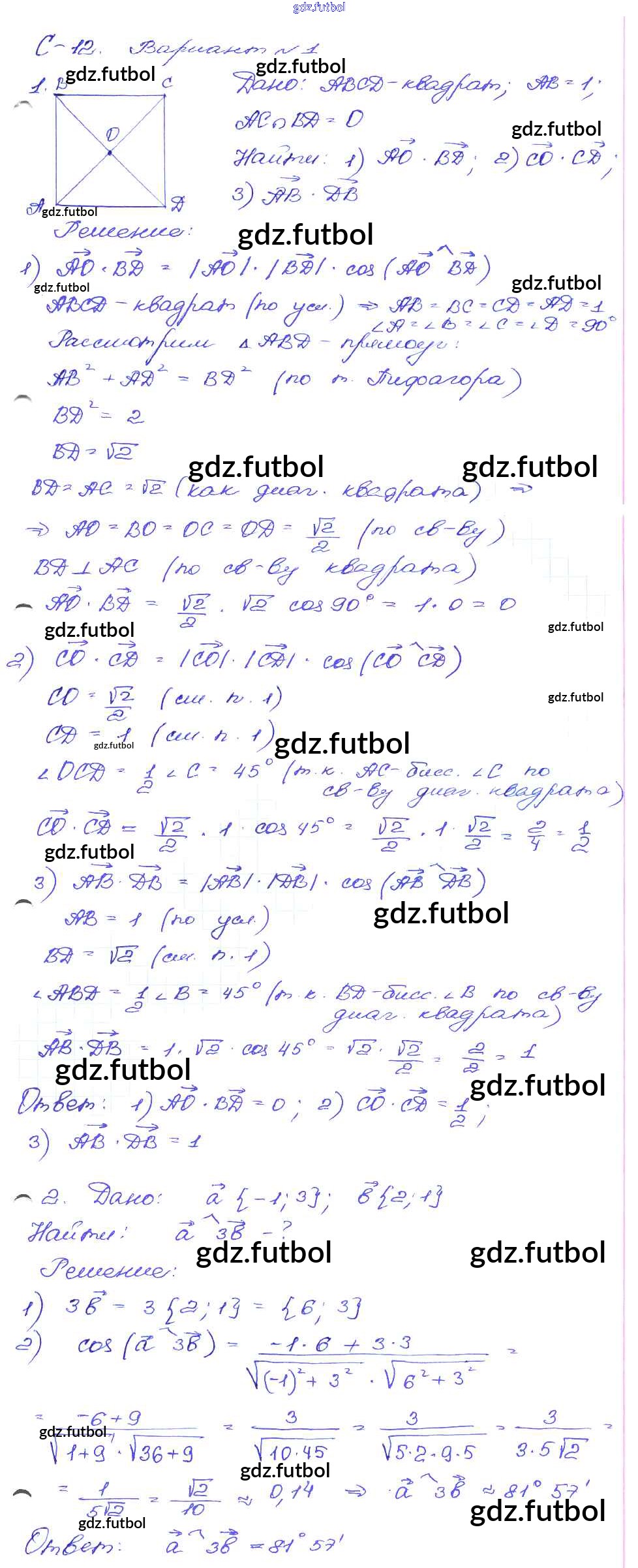 Готовые домашние задания по Геометрии за 9 класс Зив Дидактические материалы 2016 ФГОС - СР-12. Варианты 1