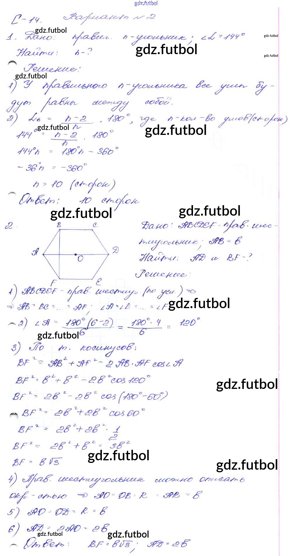 Готовые домашние задания по Геометрии за 9 класс Зив Дидактические материалы 2016 ФГОС - СР-14. Варианты 2