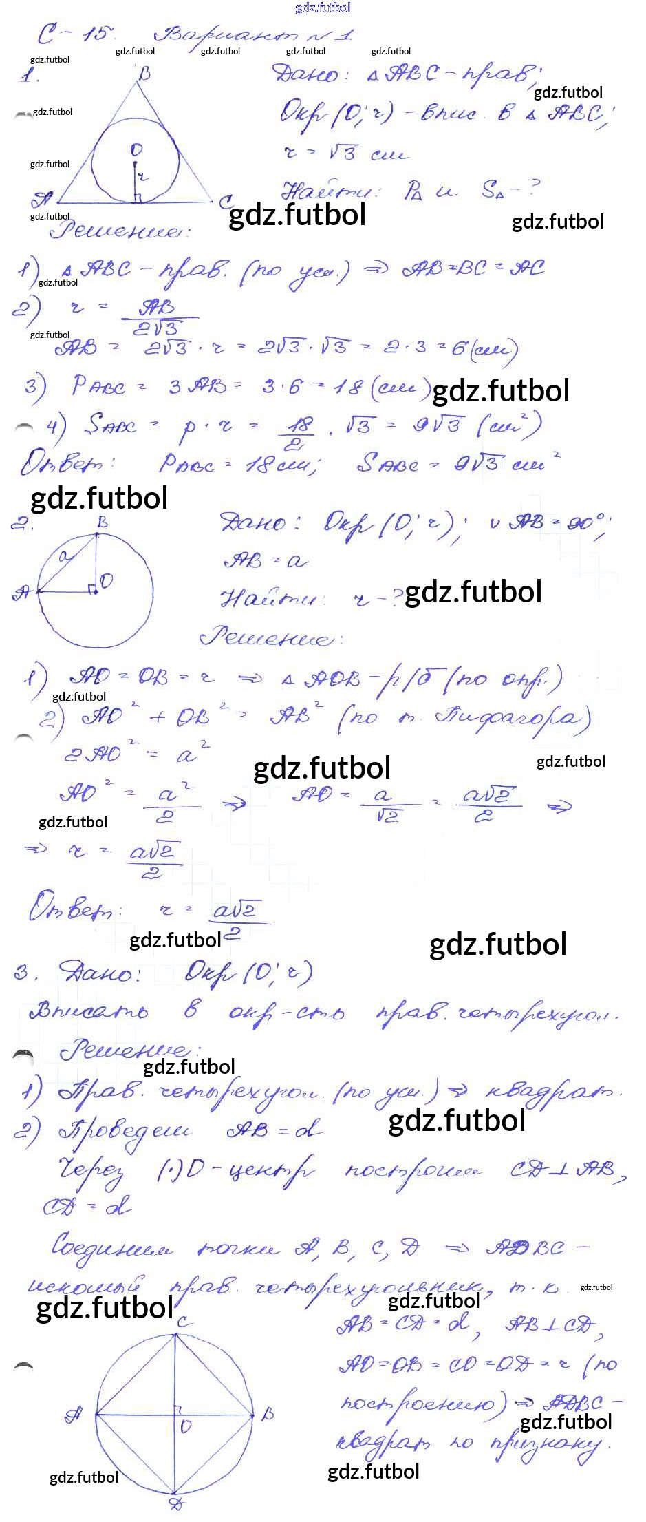 Готовые домашние задания по Геометрии за 9 класс Зив Дидактические материалы 2016 ФГОС - СР-15. Варианты 1