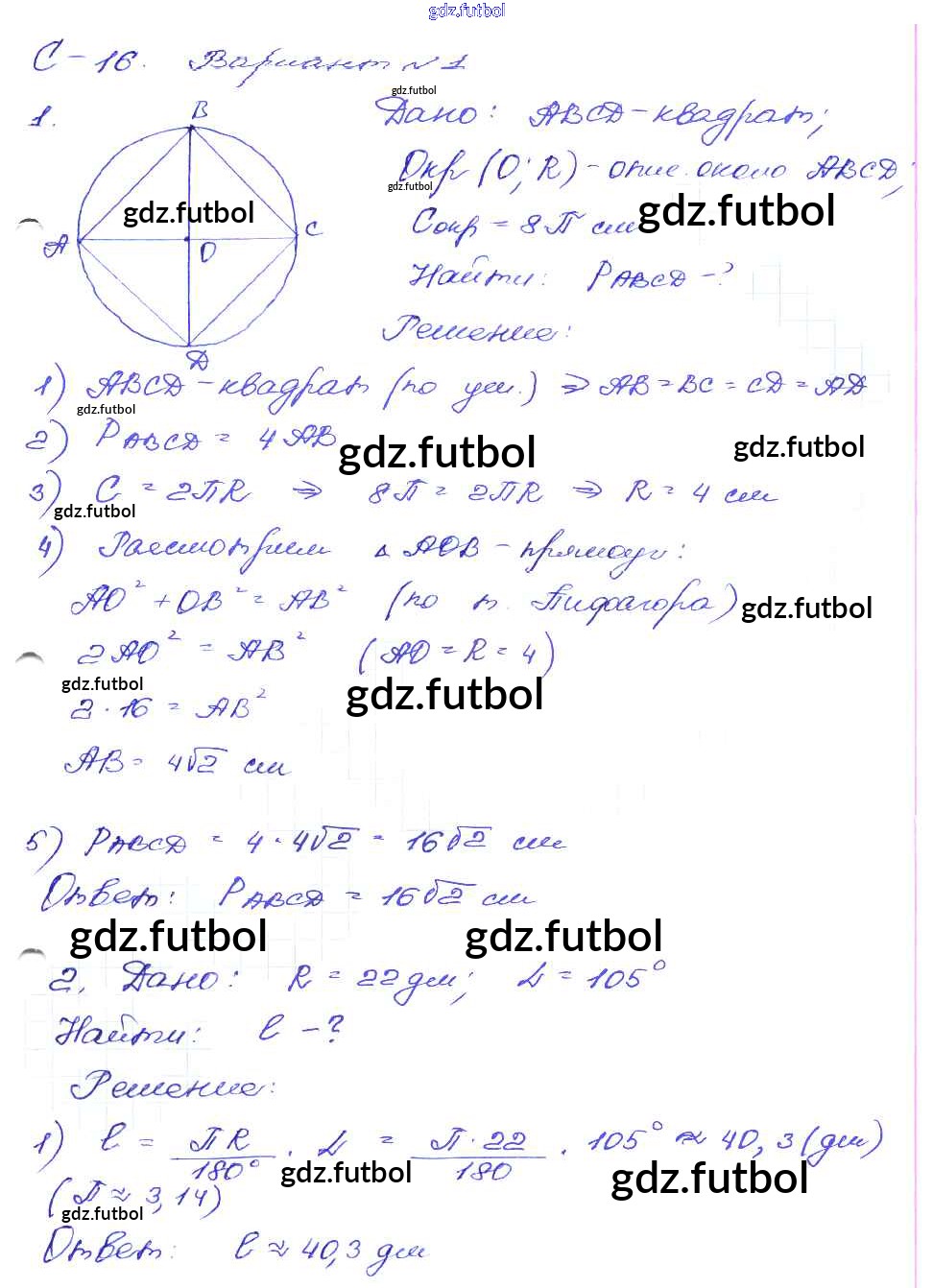 Готовые домашние задания по Геометрии за 9 класс Зив Дидактические материалы 2016 ФГОС - СР-16. Варианты 1