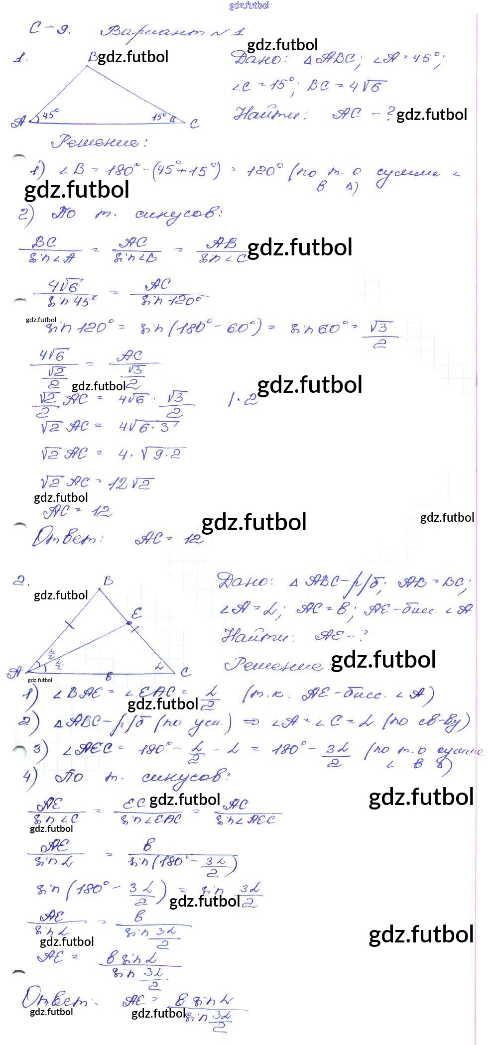 Готовые домашние задания по Геометрии за 9 класс Зив Дидактические материалы 2016 ФГОС - СР-9. Варианты 1