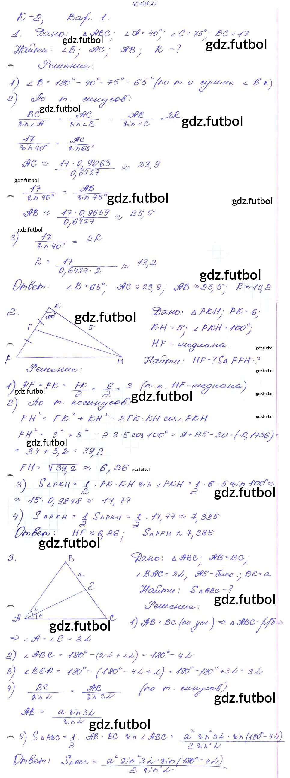 Готовые домашние задания по Геометрии за 9 класс Зив Дидактические материалы 2016 ФГОС - КР-2. Варианты 1