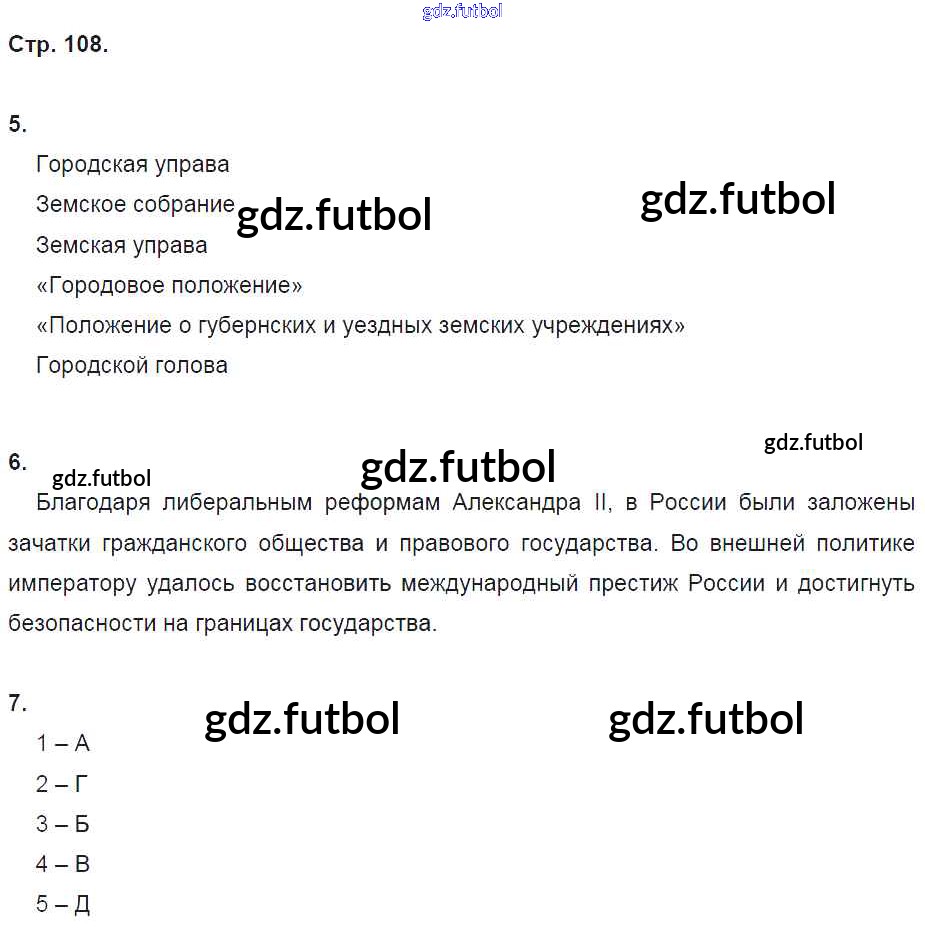 Готовые домашние задания по Истории за 9 класс Данилов Рабочая тетрадь УМК 2017 ФГОС - Часть 1. Страницы 108