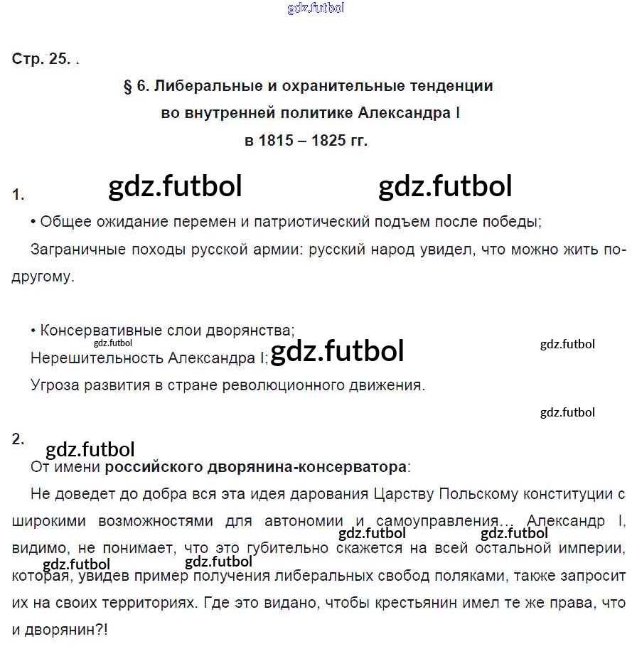 Готовые домашние задания по Истории за 9 класс Данилов Рабочая тетрадь УМК 2017 ФГОС - Часть 1. Страницы 25