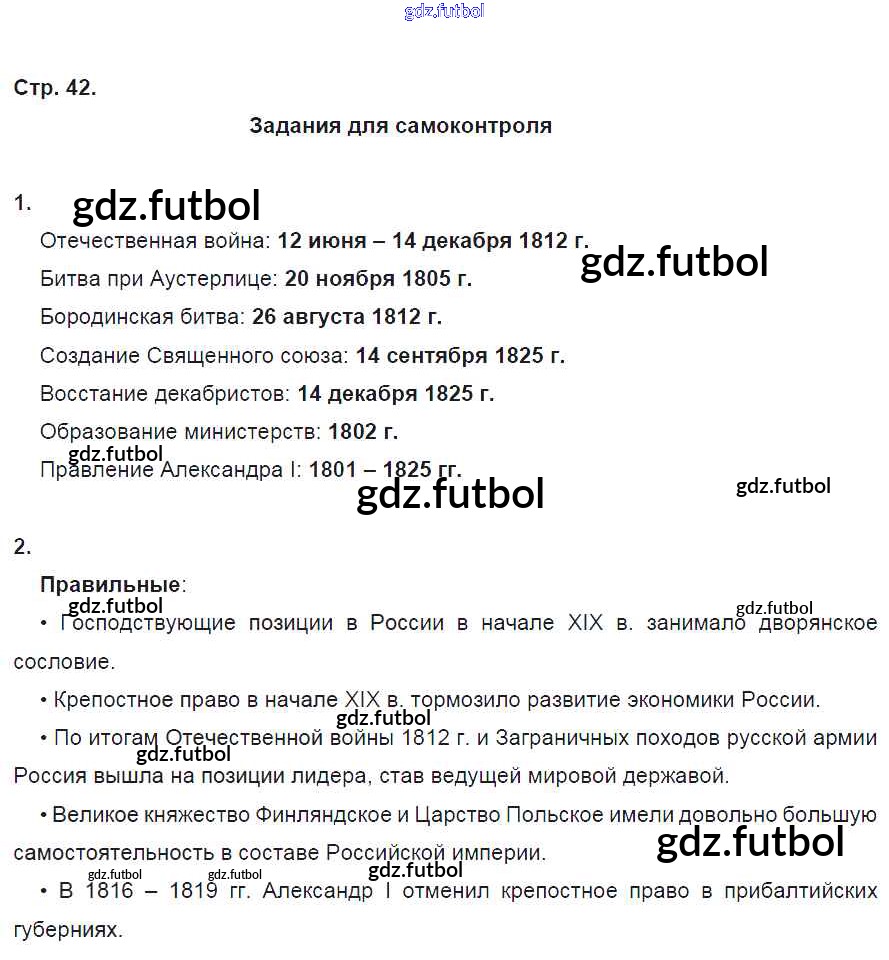 Готовые домашние задания по Истории за 9 класс Данилов Рабочая тетрадь УМК 2017 ФГОС - Часть 1. Страницы 42