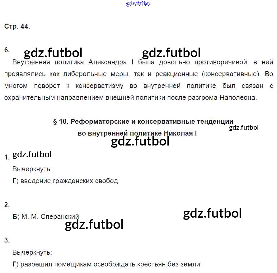 Готовые домашние задания по Истории за 9 класс Данилов Рабочая тетрадь УМК 2017 ФГОС - Часть 1. Страницы 44