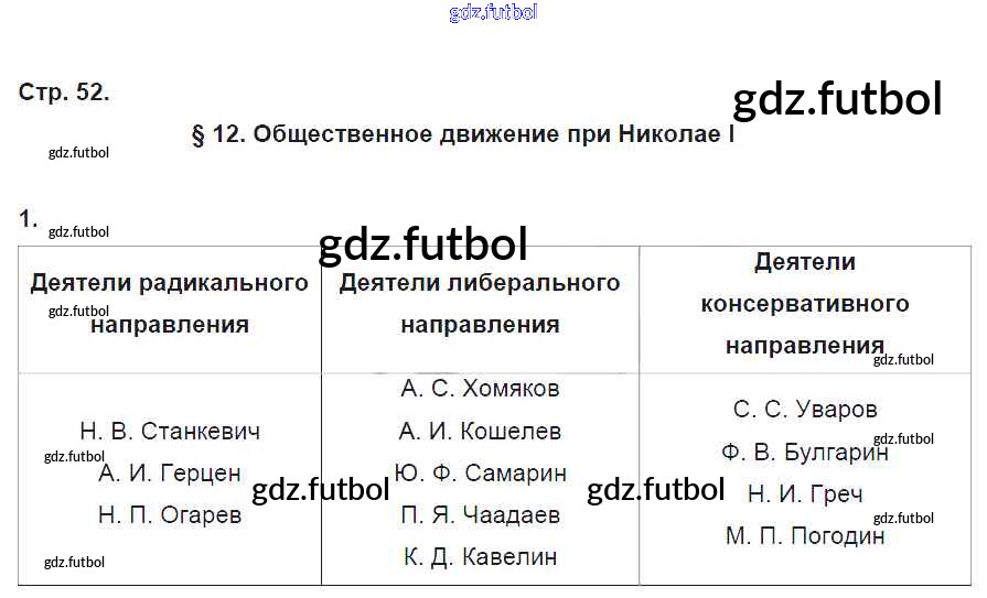 Готовые домашние задания по Истории за 9 класс Данилов Рабочая тетрадь УМК 2017 ФГОС - Часть 1. Страницы 52
