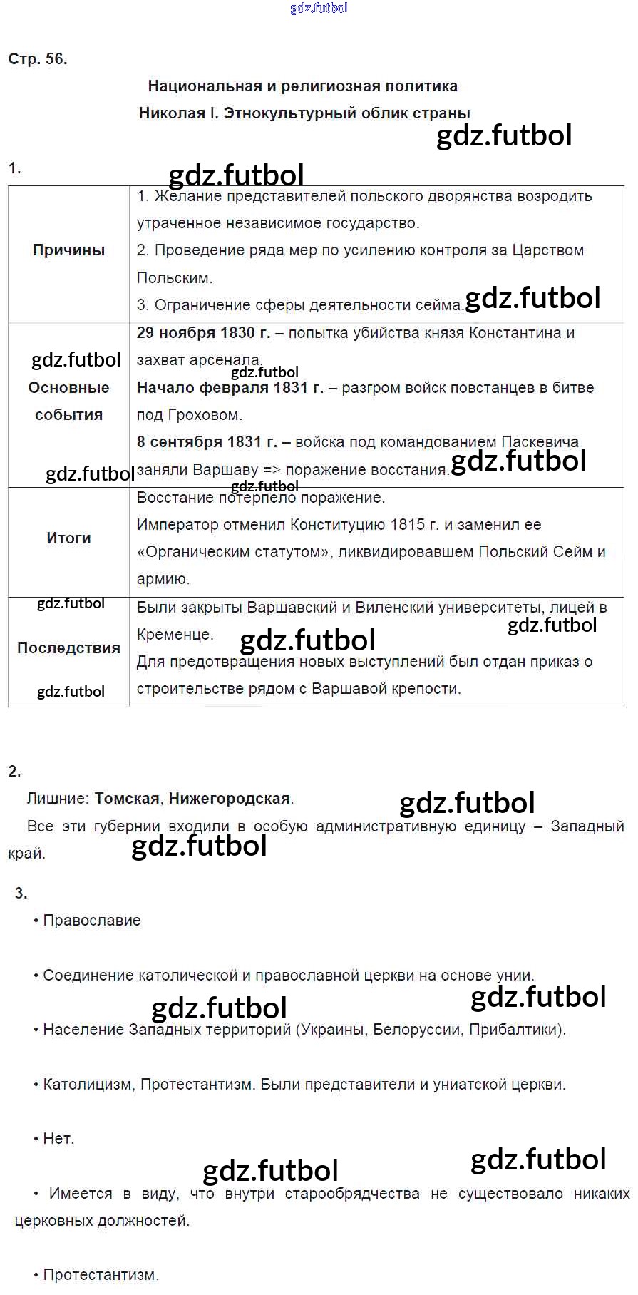 Готовые домашние задания по Истории за 9 класс Данилов Рабочая тетрадь УМК 2017 ФГОС - Часть 1. Страницы 56