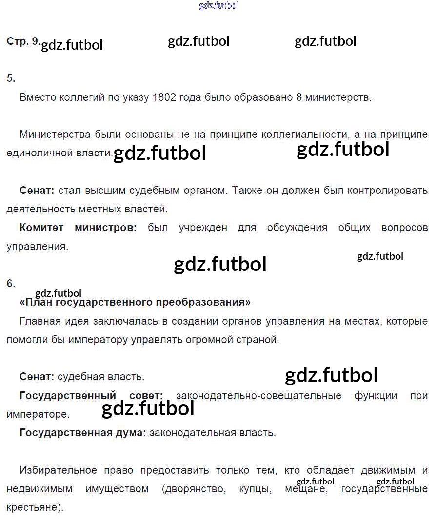 Готовые домашние задания по Истории за 9 класс Данилов Рабочая тетрадь УМК 2017 ФГОС - Часть 1. Страницы 9