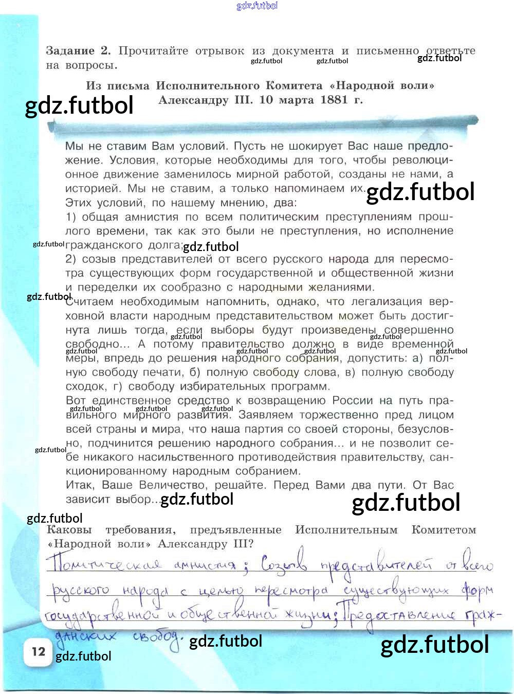 Готовые домашние задания по Истории за 9 класс Данилов Рабочая тетрадь УМК 2017 ФГОС - Часть 2. Страницы 12